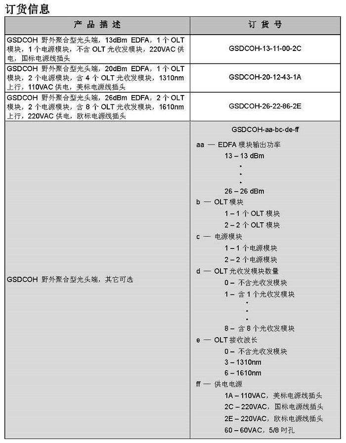 GSDCOH 也可按用戶需要配置 WDM 波分器件等。
